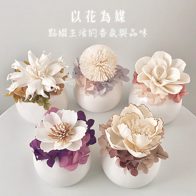 擴香花、永生花、陶瓷花器、5ml香氛精油(附禮盒)