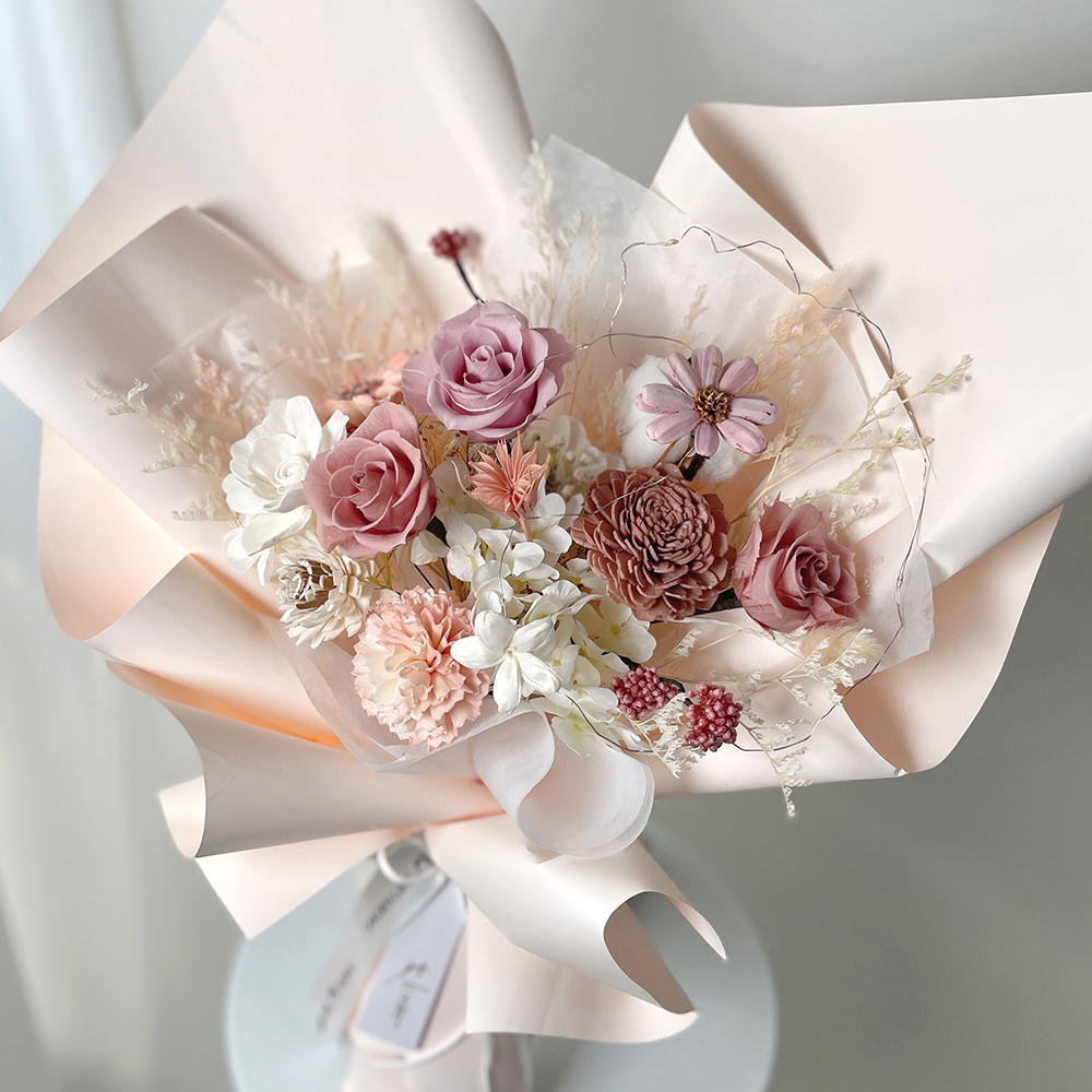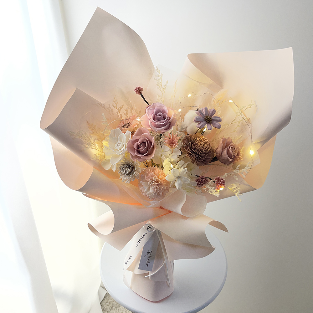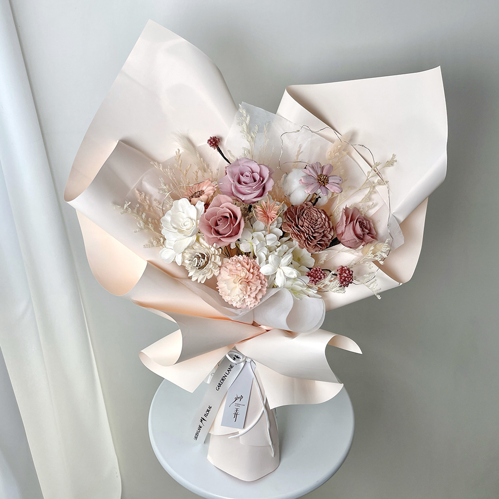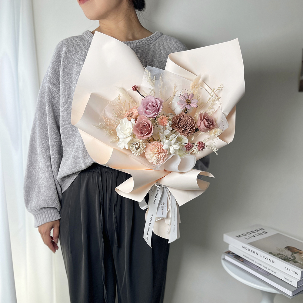 最適合存放永生花的環境,溼度約30-50%、氣溫約18-25度,保存合宜,觀賞期可達一年至三年之久。