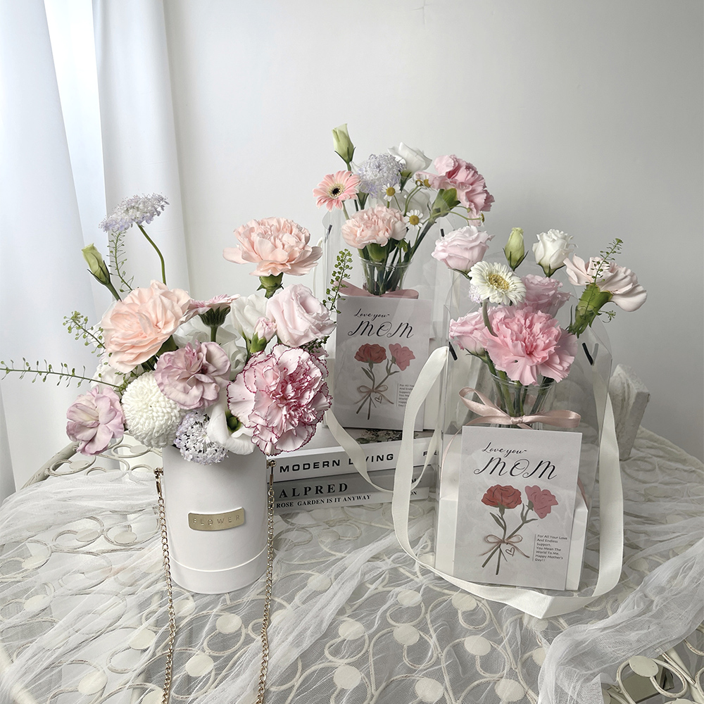 帶回家的鮮花可把水袋拆掉投放於花瓶中,注水5分滿,並放置在陰涼通風的地方,避免太陽直射。鮮花不耐高溫,若室溫過高花較快凋謝。